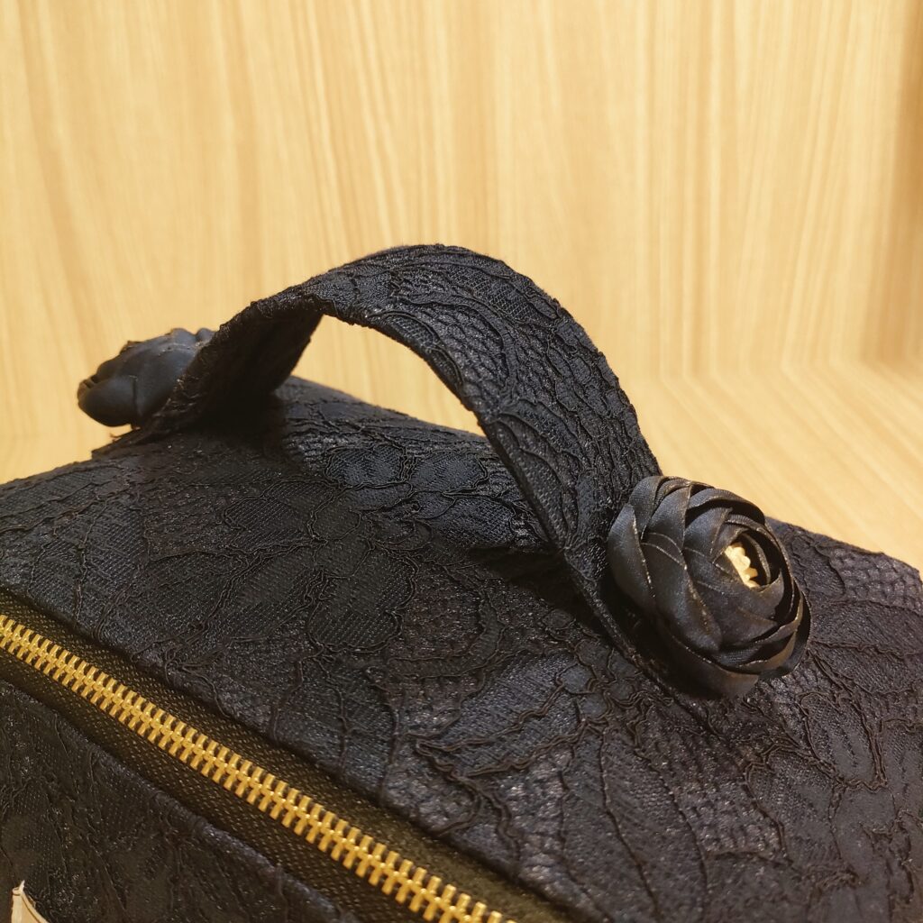 ● 表地:黒レース + 綿100%無地生地(両面接着芯 + 硬質芯使用)
