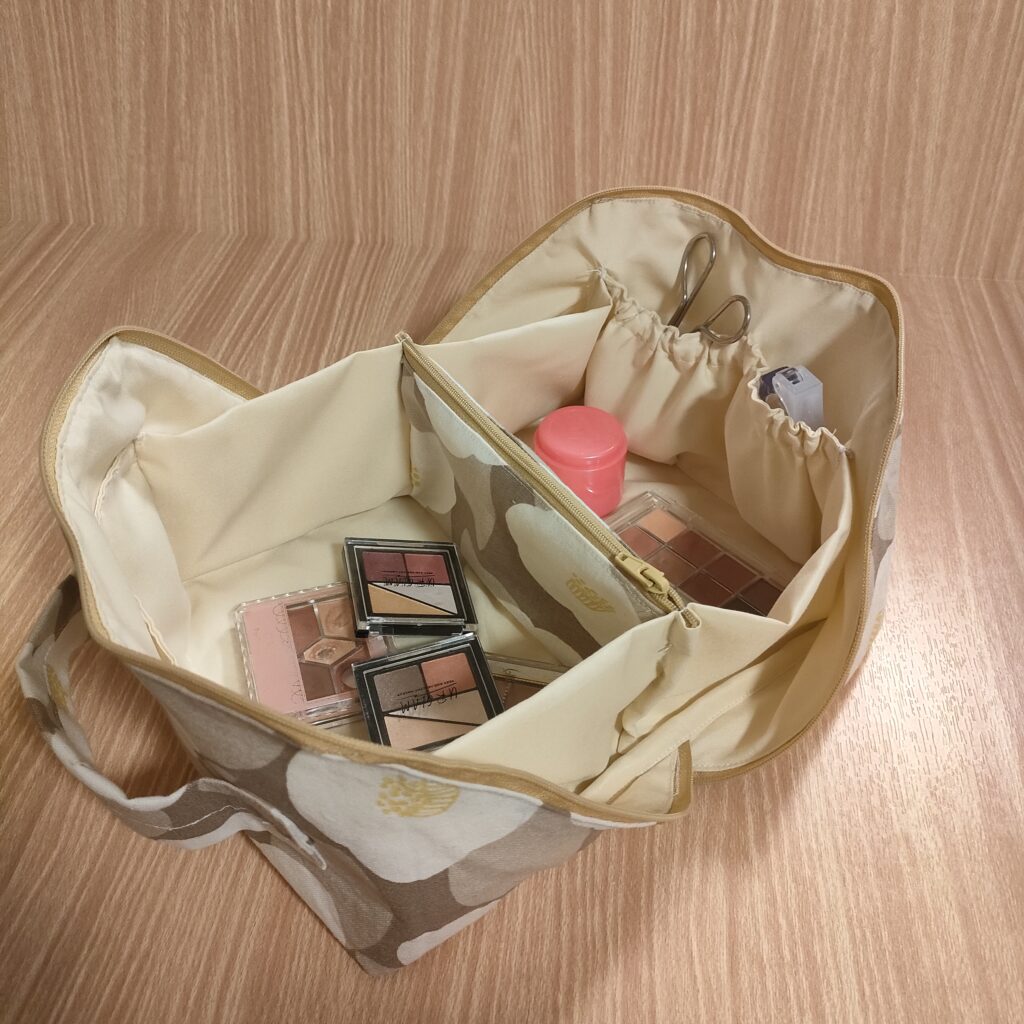 メイクポーチでも、裁縫道具入れでも、アクセサリー収納でも。